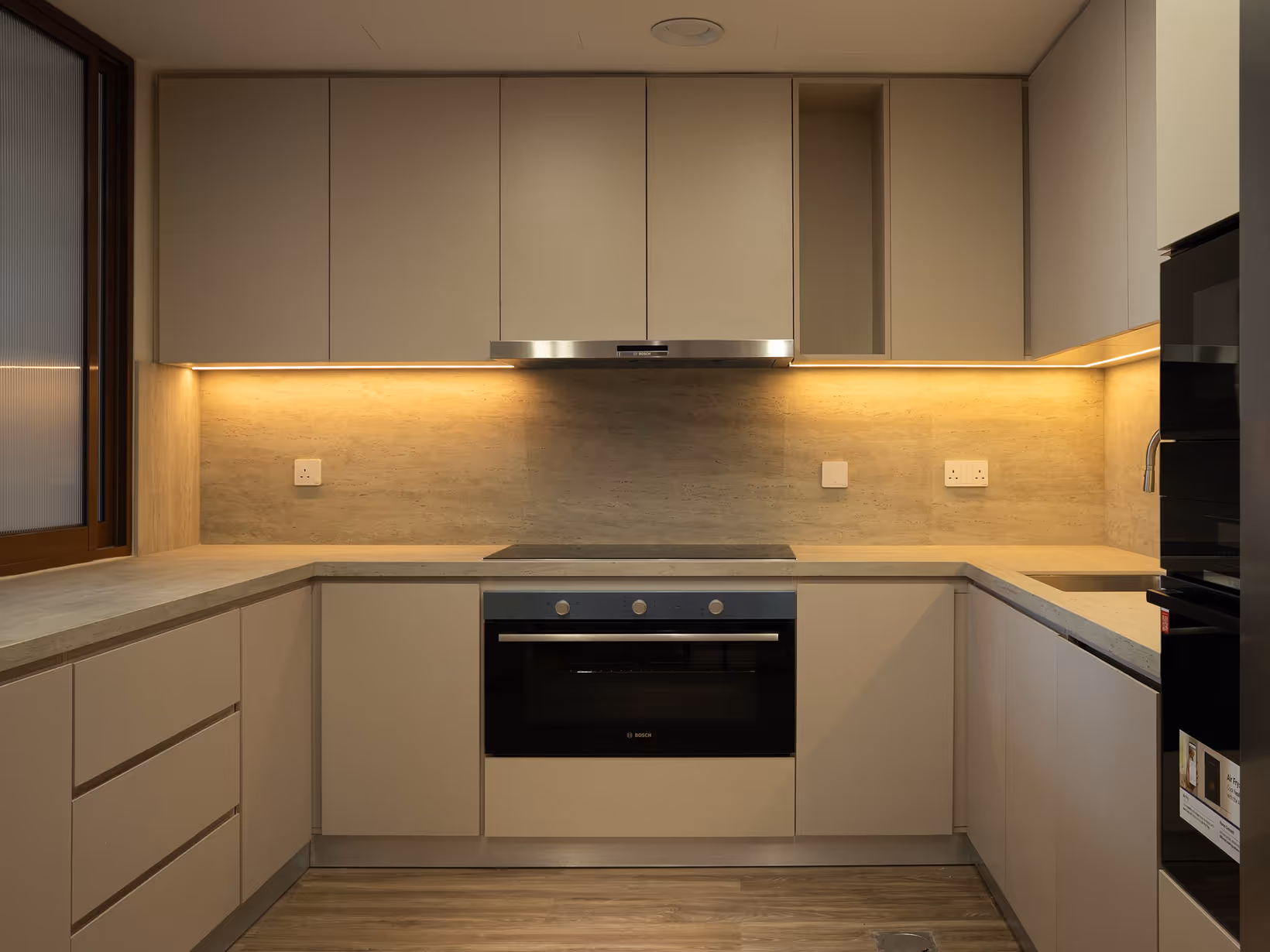 From walls to ceiling, this apartment received a complete renovation – with decorative plaster adding subtle texture, stretch ceilings creating clean lines and integrated lighting, and the balcony redesigned for seamless indoor-outdoor flow. All bathrooms and living spaces were updated with modern fixtures and refined finishes. The final space feels intentional, quiet, and effortlessly functional – designed for comfort.