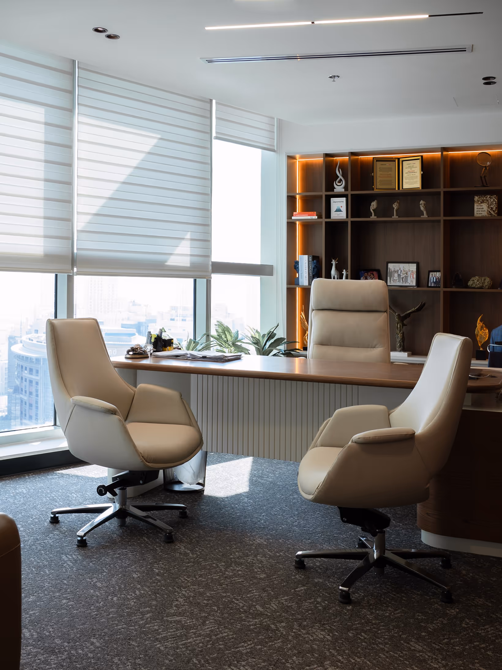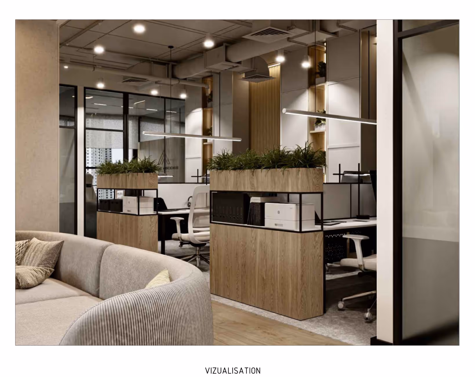 Starting from a bare shell – no floors, walls, or lighting – we renovate this 182 sqm office from scratch. Cement screed, soundproofed cabins, full ceiling systems, and integrated electricals were installed. Glass partitions and free-standing furniture complete the look. The result: a modern, functional space with welcoming lounge, open work zone, and quiet meeting rooms – ready for business.