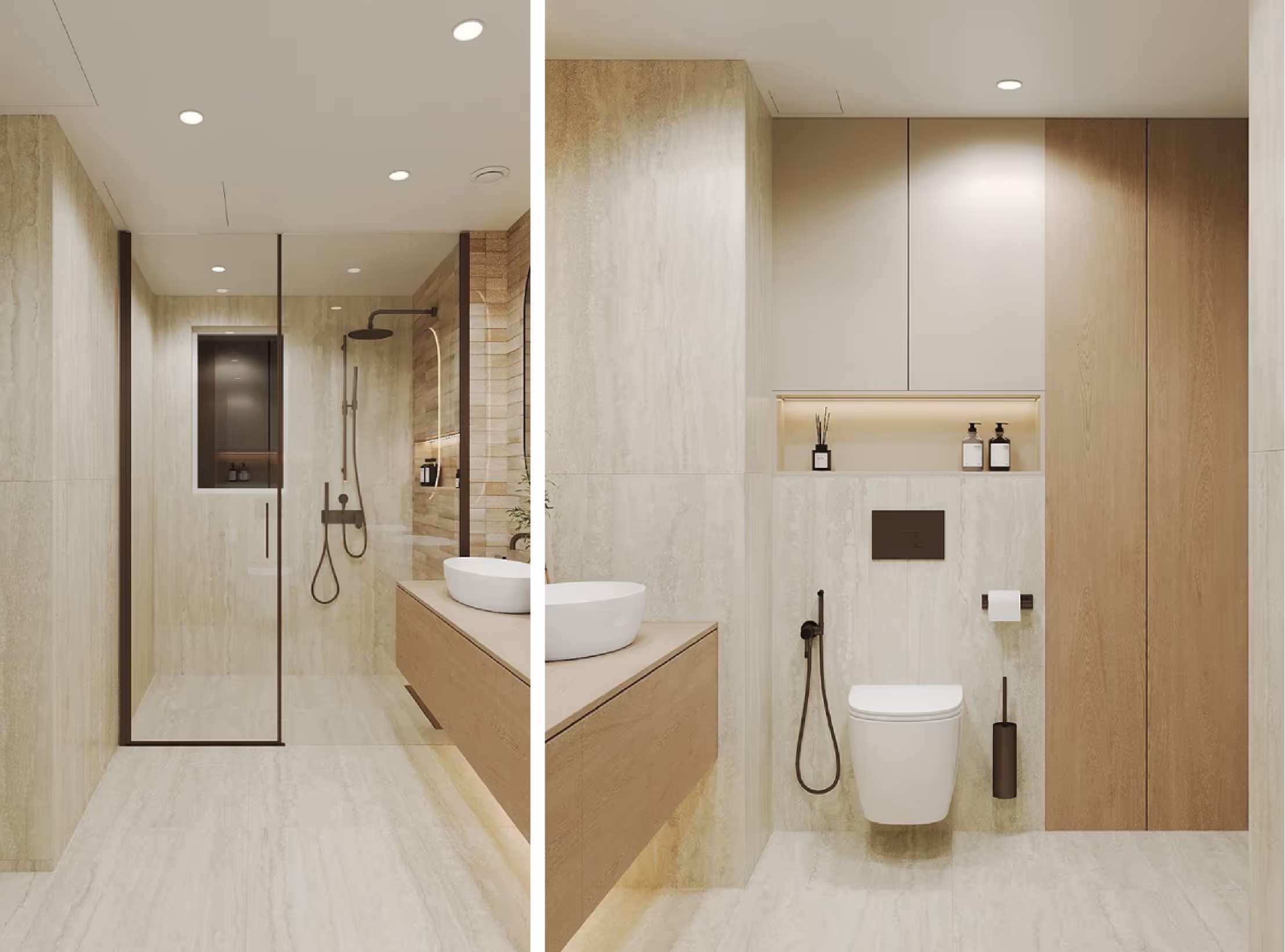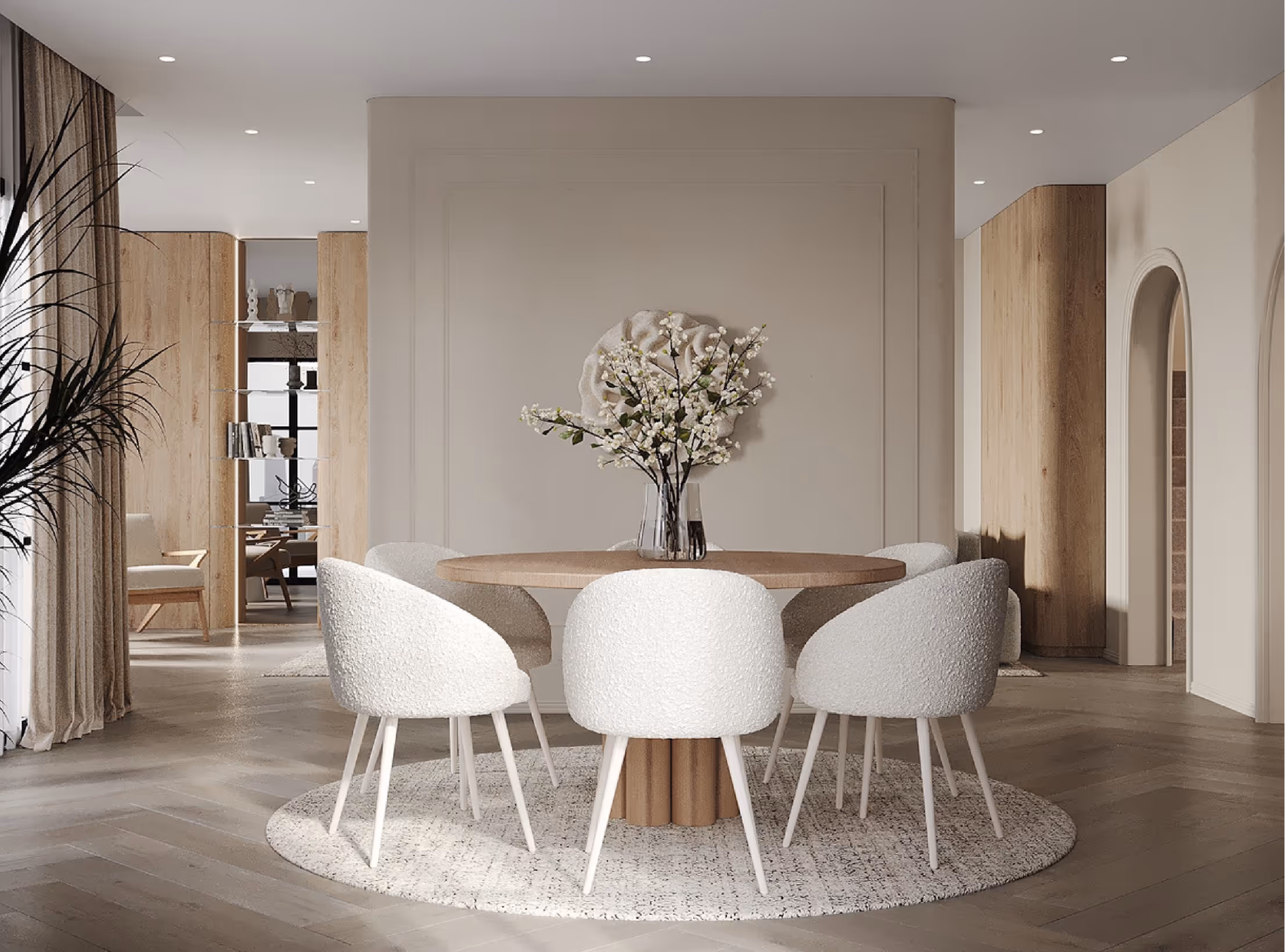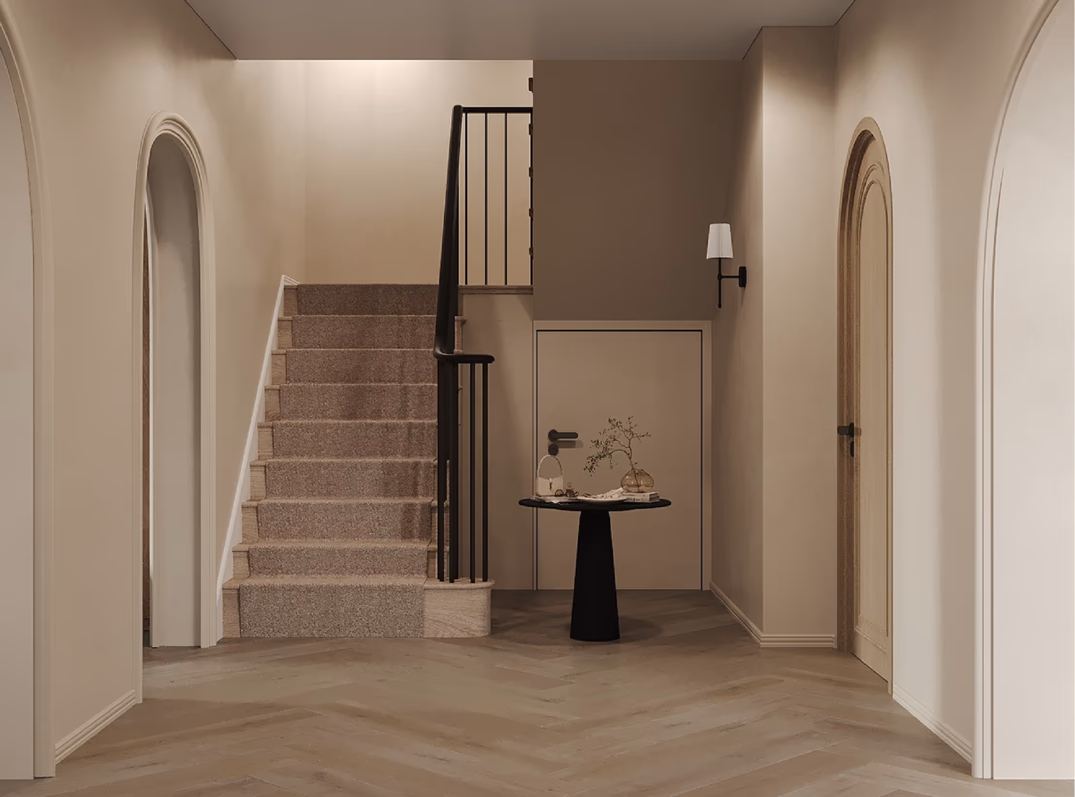 This villa is being transformed into a modern, cohesive home – beginning with the relocation of the kitchen and guest WC, which required full re-routing of water supply and water drainage. SPC flooring is installed throughout, and stair railings are fully replaced. Windows are enlarged to bring in more light, custom moldings are added, and data and camera wiring is run through walls and ceilings. The result will be a thoughtfully restructured, fully functional residence – clean in layout and resolved in execution.