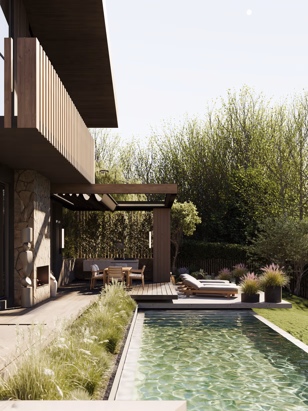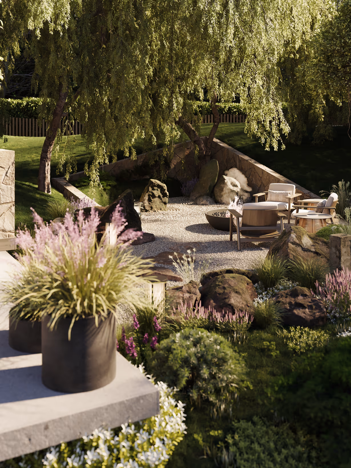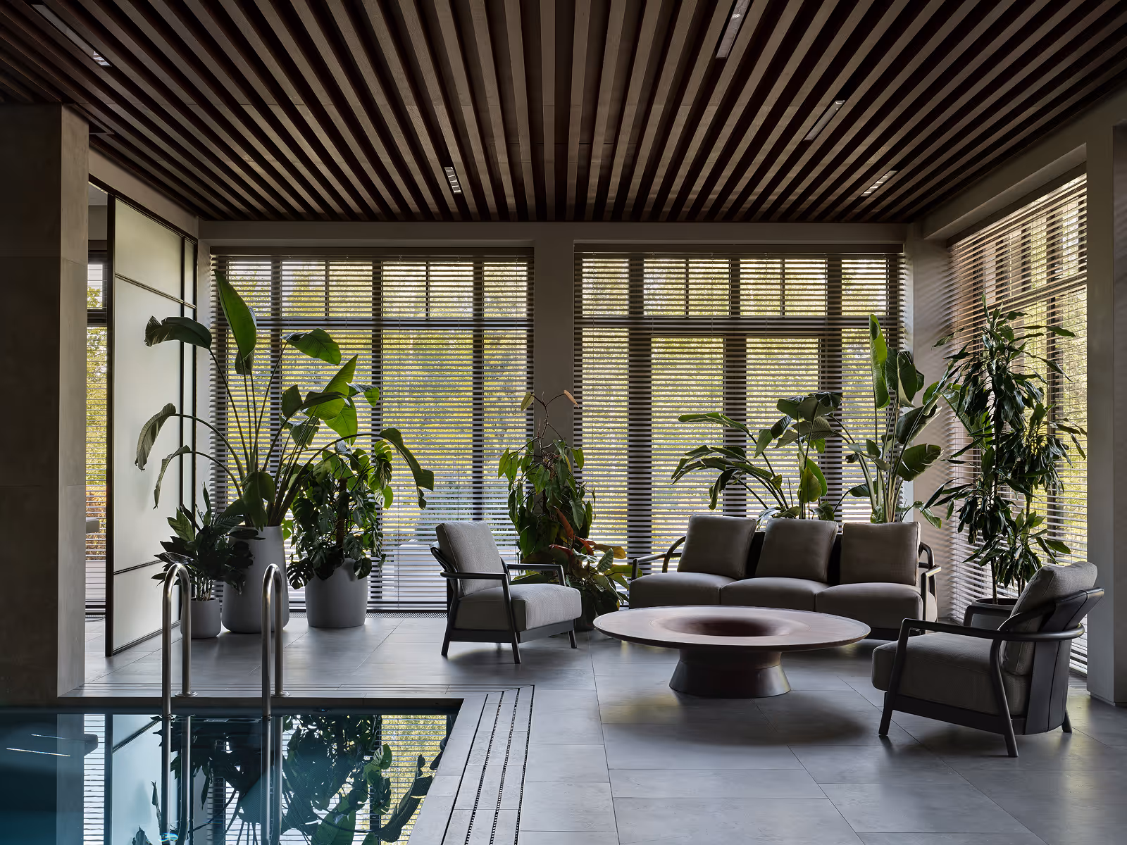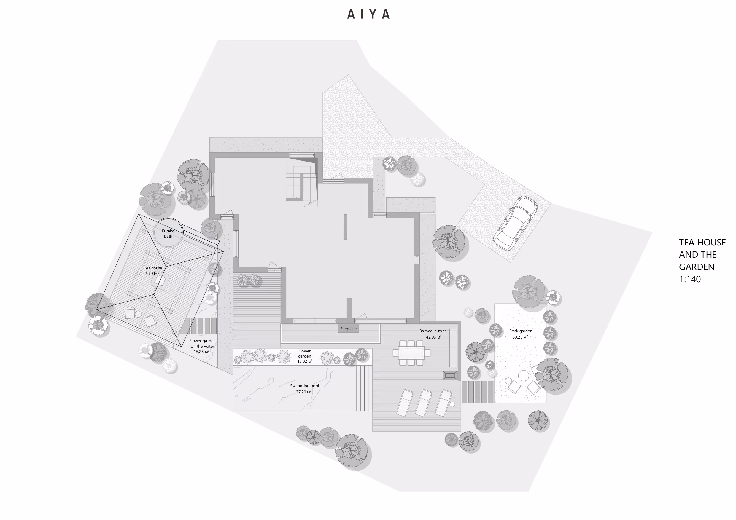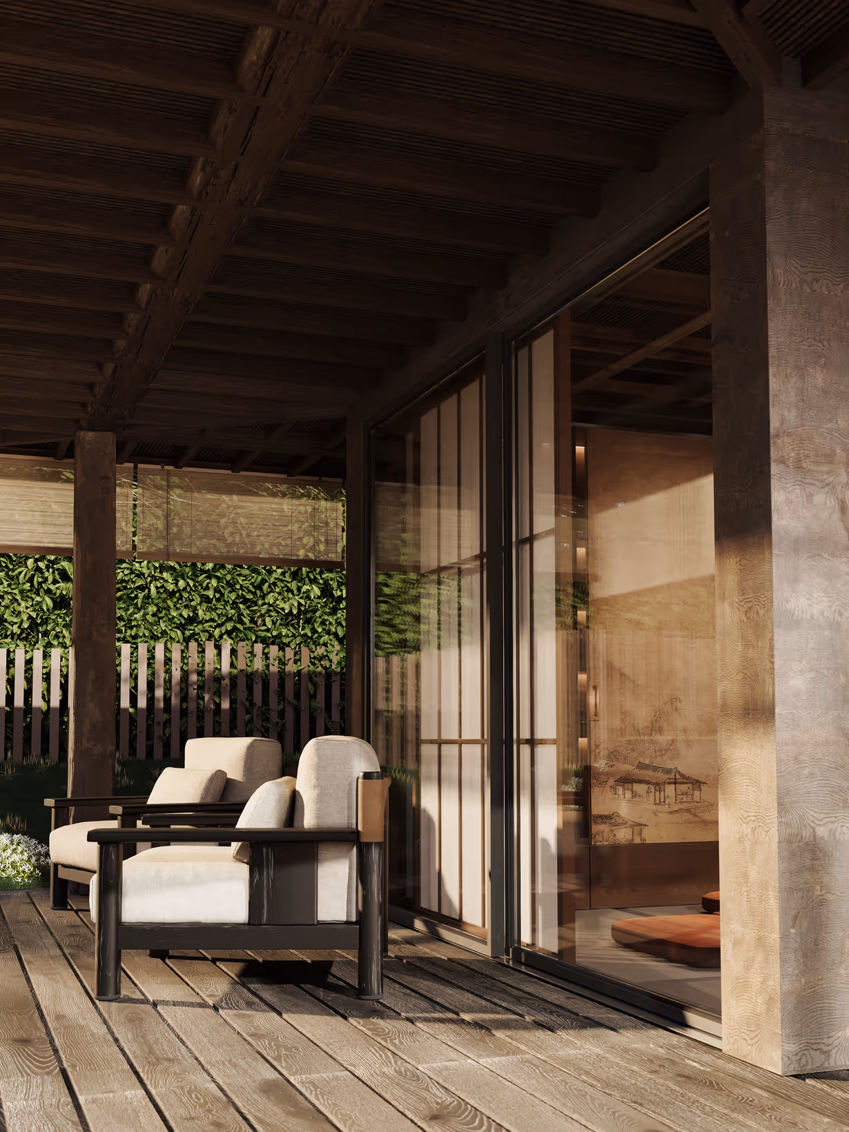 The project brings together architecture, interior, and landscape design to create a contemporary retreat rooted in tradition. At its heart is a tea house with a carefully composed tea room – a space of calm, intimacy, and ritual. Natural materials, soft textures, and bespoke details shape the tea house. Surrounding it, the landscape unfolds as an extension of its philosophy. The garden is conceived as a series of contemplative zones, where water, stone, and greenery remain in constant dialogue. Outdoor furniture continues this approach, uniting comfort, durability, and a seamless connection to nature.